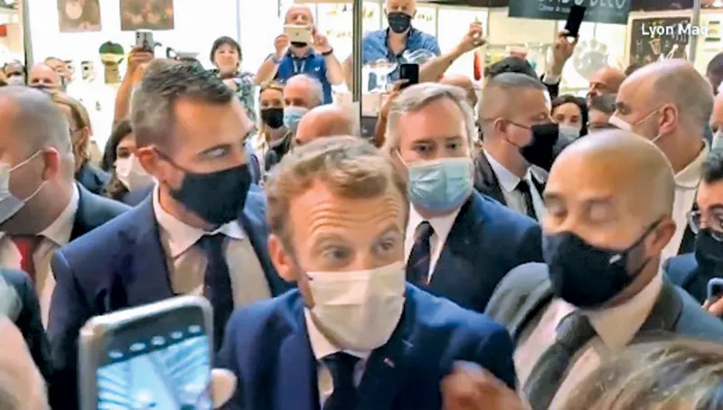 ප්රංස ජනාධිපතිවරයා මීට පෙර ද ජනතාව අතර ගැවසෙමින් සිටියදී මෙවැනි සිදුවීම් රැසකට මුහුණ පා තිබේ. වරක් 2017 ජනාධිපති අපේක්ෂක වශයෙන් නම් කිරීමෙන් පසු ඔහුගේ හිසට බිත්තර ප්රහාරයක් එල්ල වූ අතර, මේ වසරේ ජූනි මාසයේදී උත්සවයකට සහභාගි වීමෙන් පසු ජනතාව සමඟ කතාබහ කරමින් සිටියදී එක්තරා මිනිසකු ඔහුට කම්මුල් පහරක් එල්ල කර තිබිණි.