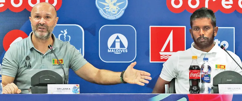 මේ මාධ්‍ය හමුවට එක් වූ ශ්‍රී ලංකා පාපන්දු පුහුණුකරු බොස්නියා ජාතික අමීර් ඇලජික් මහතා පැවසූවේ අද දිනය ශ්‍රී ලංකා පාපන්දුවට ඉතා වැදගත් වන බවය. ඉන්දියාව පරාජයට පත්කොට කලකට පසු පාපන්දු ජයක් සොයා ශ්‍රී ලංකා පිල පිටියට පිවිසෙන බවයි. “ඉන්දීය කණ්ඩායම පිළිබඳ අප අඩුවන් තක්සේරු කරන්නේ නෑ. ඉන්දීය පිලට හොඳ පීඩනයක් දුන්නොත් තරගයේ ප්‍රතිඵලය අපට වාසිදායක වන අයුරින් නිමා කිරීම අපහසු නෑ. අප අද තරගයේ වැරදි අඩුවෙන්ම කළ යුතුයි” ඔහු අවධාරණය කළේය.