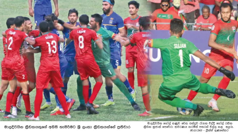 දකුණු ආසියා පාපන්දු ශූරයන් වන මාලදිවයින් පිලට සිතුසේ ගෝල් රැස් කිරීමට ශ්රී ලංකා ක්රීඩකයෝ ඉඩ නොදුන් අතර, ගෝල් කණුව ආසන්නයේම ශ්රී ලංකාවට ගෝල් රැස් කිරීමේ ගැනීමේ පහසු අවස්ථා 4ක් පමණ ගිලිහී ගියේ අවාසනාවන්ත අයුරිණි. එමෙන්ම තරගය අවසන් වීමට ඔන්න මෙන්න තිබියදී මාලදිවයින් ක්රීඩකයකු මොහොමඩ් ආකීබ් සමඟ හිතාමතාම ගැටීමෙන් කිසියම් කළබලකාරී තත්ත්වයක් හටගත් අතර, අවසානයේ ගැටුමට මුල් වූ මාලදිවයින් ක්රීඩක ඉබ්රහීම් අසීම්ට හා ආකිබ්ට කහ කාඩ්පත් අවවාද ලබාදුණි.