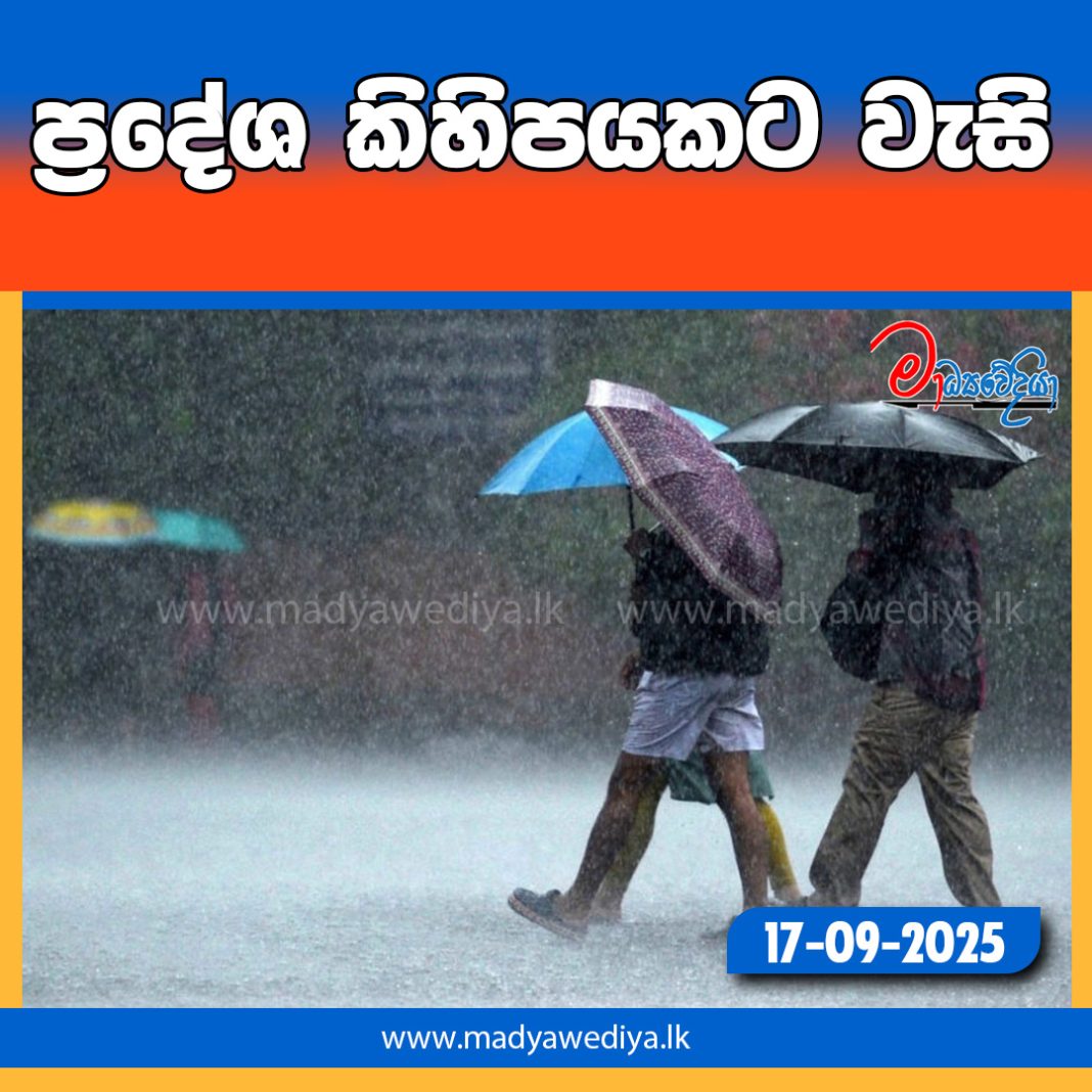බස්නාහිර, සබරගමුව, මධ්යම, වයඹ සහ උතුරු පළාත්වලත් ගාල්ල සහ මාතර දිස්ත්රික්කවලත් විටින් විට වැසි ඇතිවේ.
