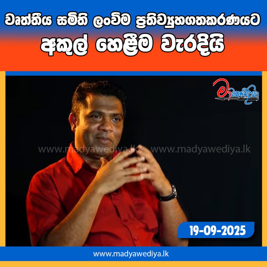 ලංකා විදුලිබල මණ්ඩලය ලාභ ලබන ආයතනයක් බවට පත් කිරීමේ අරමුණින් රජය විසින් සිදු කරනු ලබන ප්රතිව්යුහගතකරණය සඳහා සහයෝගය ලබා දෙන ලෙස සෞඛ්ය හා ජනමාධ්ය අමාත්ය වෛද්ය නලින්ද ජයතිස්ස වෘත්තීය සමිතිවලින් ඉල්ලා සිටියි.