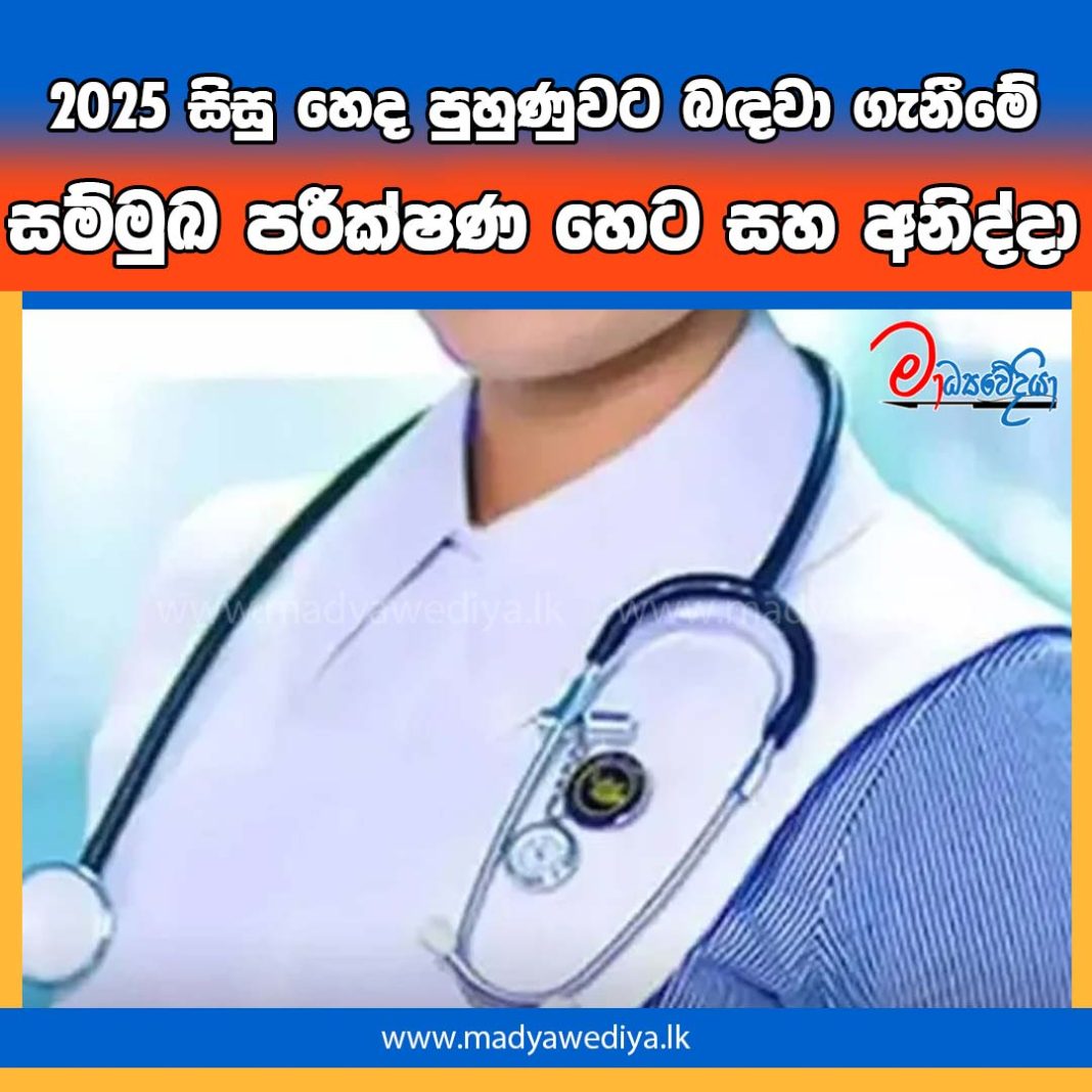 2025 සිසු හෙද පුහුණුවට බඳවා ගැනීමේ සම්මුඛ පරීක්ෂණ හෙට සහ අනිද්දා