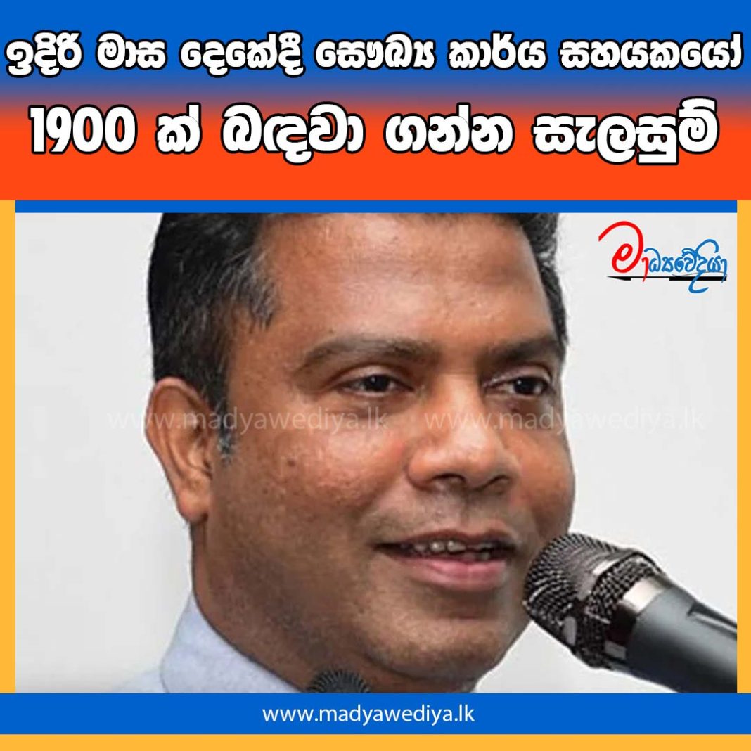 සෞඛ්ය කාර්ය සහායකයින් 1900 ඉදිරි මාස දෙකේදී බඳවා ගැනීමට සැලසුම් කර තිබෙන බවයි අමාත්යවරයා පැවසුවේ .