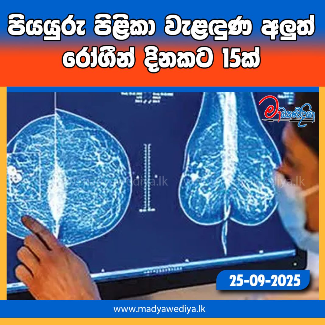 පියයුරු පිළිකා වැළඳුණ අලුත් රෝගීන් දිනකට 15ක්