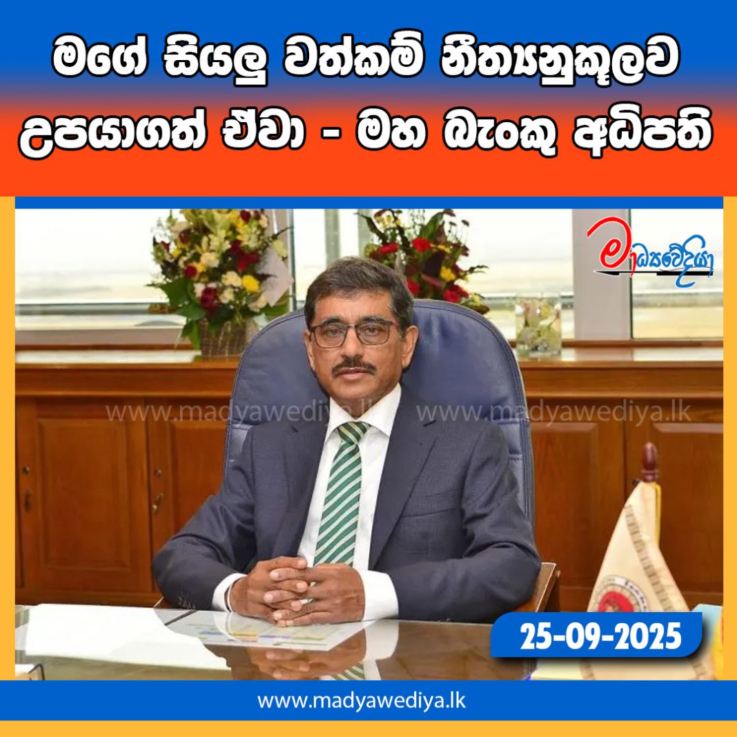 මගේ සියලු වත්කම් නීත්‍යනුකූලව උපයාගත් ඒවා – මහ බැංකු අධිපති