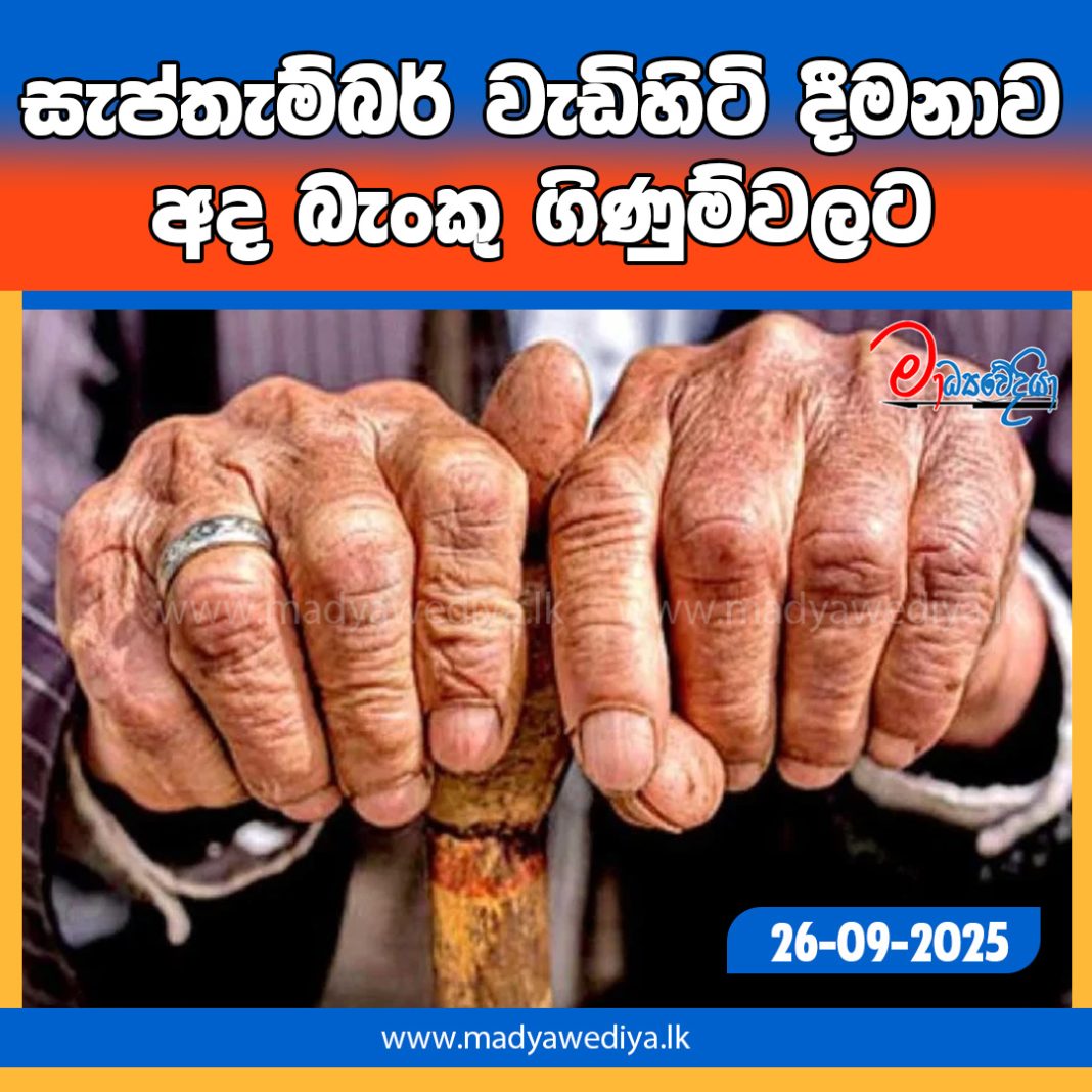 සැප්තැම්බර් වැඩිහිටි දීමනාව අද බැංකු ගිණුම්වලට