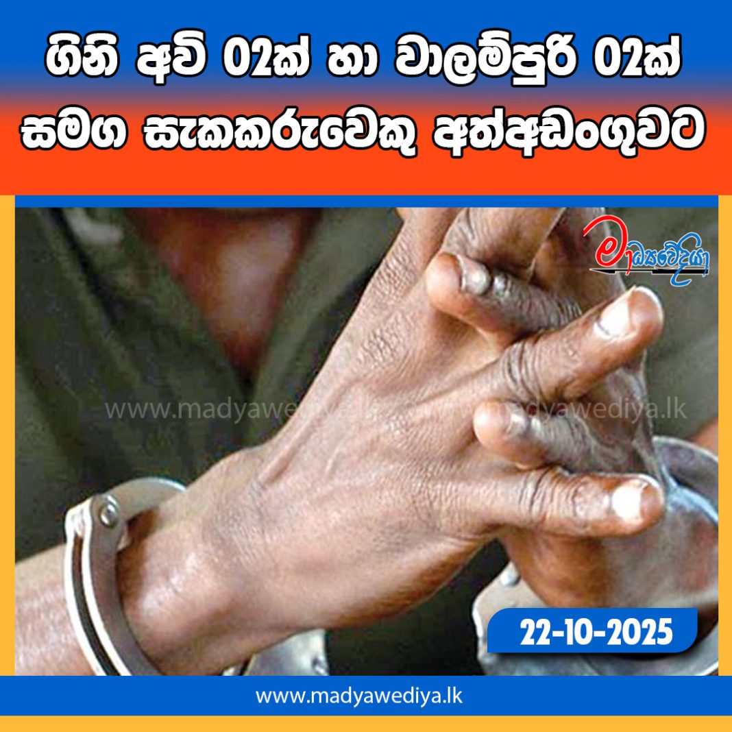 ඊයේ (21) අම්බලන්ගොඩ පොලිස් වසමේ උඩකැලෑව ප්රදේශයේදී මෙරට නිෂ්පාදිත ගිනි අවි 02ක් හා වාලම්පුරි 02ක් සමග සැකකරුවෙකු අත්අඩංගුවට ගෙන තිබෙනවා.