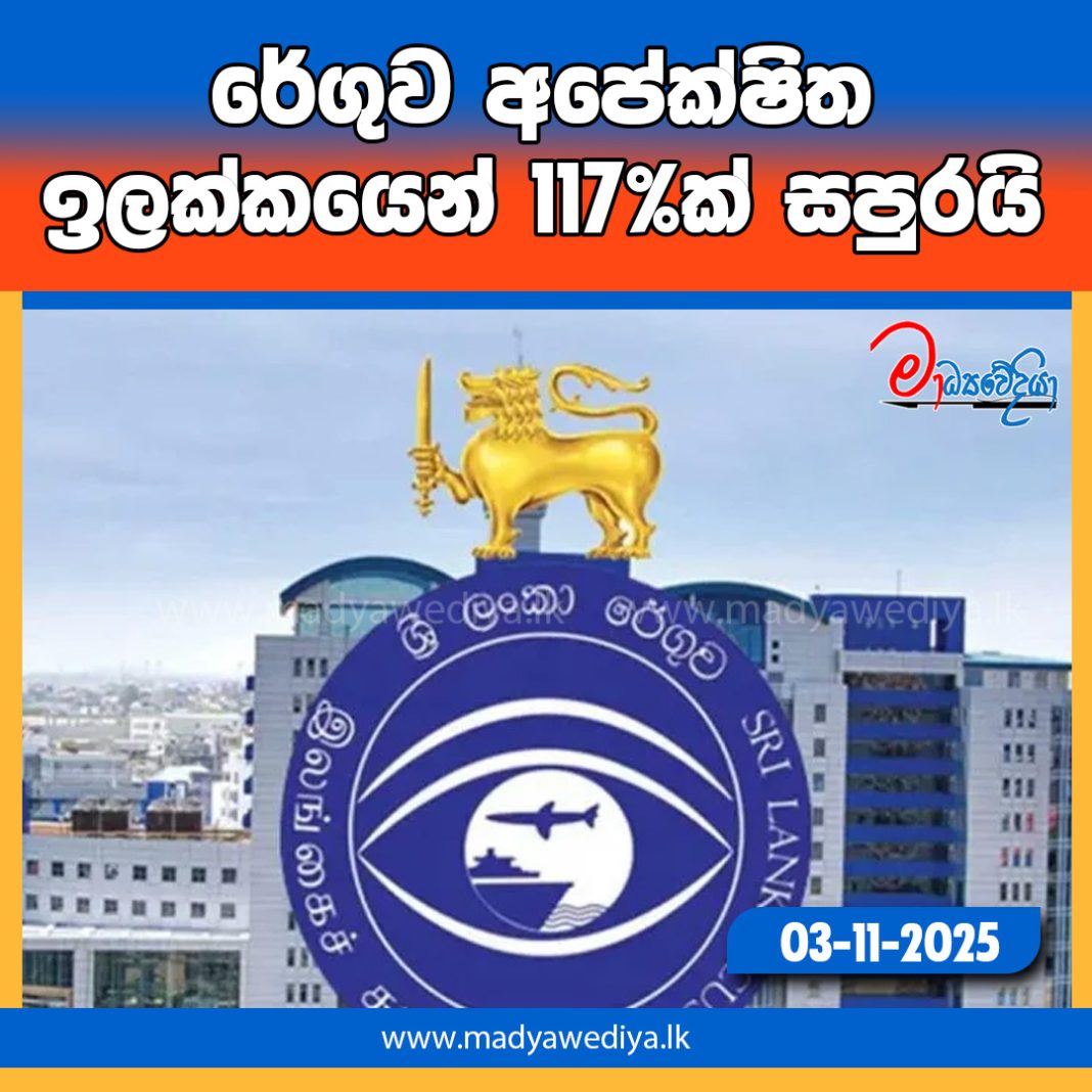 2025 සැප්තැම්බර් 30 වන විට අපේක්ෂිත ඉලක්කයෙන් 117% සපුරාලීමට හැකිවූ බව ශ්රී ලංකා රේගු නිලධාරීන් පසුගියදා ක්රම සහ විධි පිළිබඳ කාරක සභාවට පවසා තිබෙනවා.