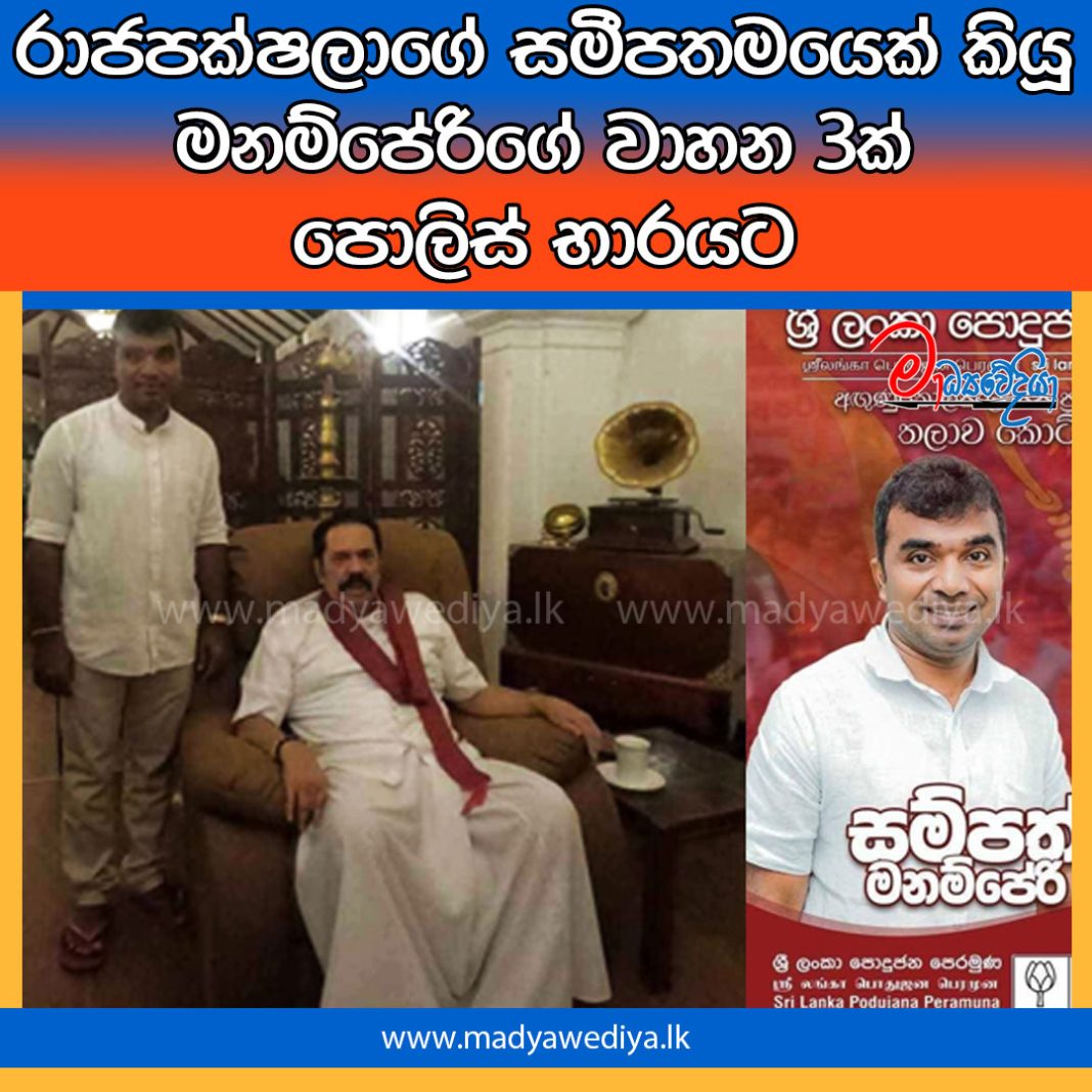 සම්පත් මනම්පේරිට අයත් වාහන තුනක් පොලිස් භාරයට