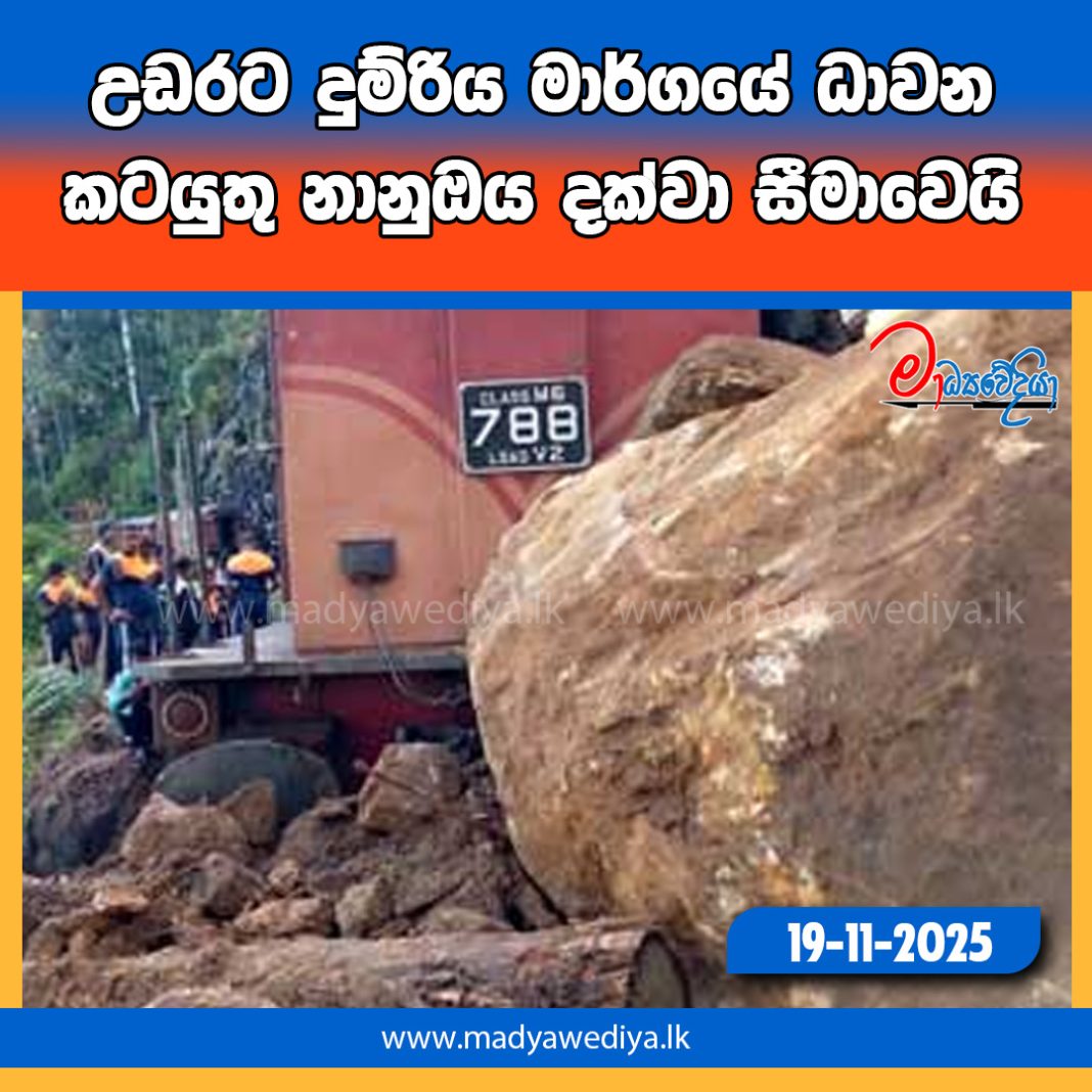 උඩරට දුම්රිය මාර්ගයේ ධාවන කටයුතු අද (19) නානුඔය දක්වා සීමා කර ඇති බව දුම්රිය දෙපාර්තමේන්තුව පවසයි.